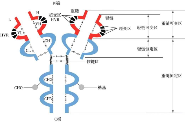 抗體主要包括兩個功能結構域,分別是兩個相同的抗原結合片段(Antigen binding fragment, Fab)識別并結合抗原,和一個可結晶片段(Crystallizable fragment, Fc)與免疫系統的其他成分(吞噬細胞、補體等)相互作用,以促進抗原的清除。